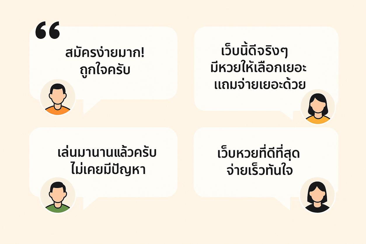 ไม่มีอะไรที่สามารถสร้างความมั่นใจให้ผู้ใช้ใหม่ได้ดีกว่าคำรีวิวจากผู้ใช้จริง การได้ฟังจากผู้ที่เคยมีประสบการณ์ตรงกับการใช้งานเว็บหวยออนไลน์สามารถช่วยให้ผู้อ่านตัดสินใจได้ว่าเว็บไซต์ใดเหมาะสมกับความต้องการของตนเอง บทรีวิวเหล่านี้ได้รับการรวบรวมจากผู้เล่นทั้งหน้าใหม่และผู้มีประสบการณ์ มาดูกันว่าผู้ใช้งานแต่ละคนมีมุมมองอย่างไรบ้าง: